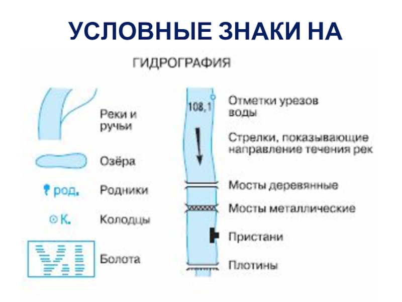 Слайд 8УСЛОВНЫЕ ЗНАКИ НА КАРТЕ
