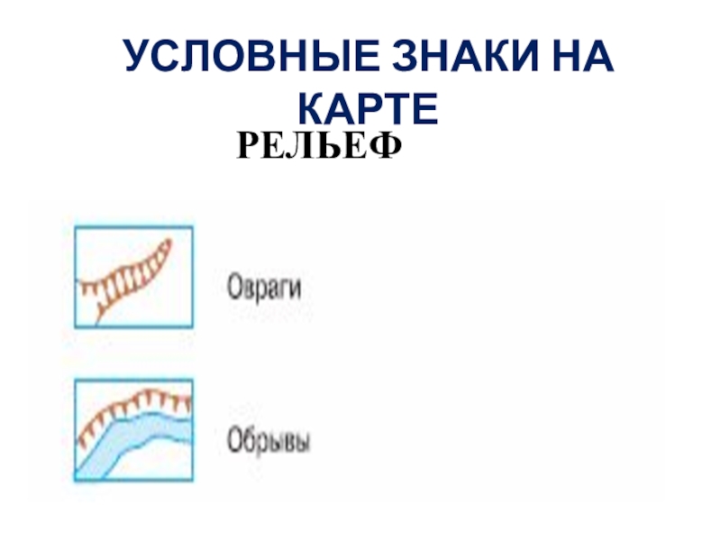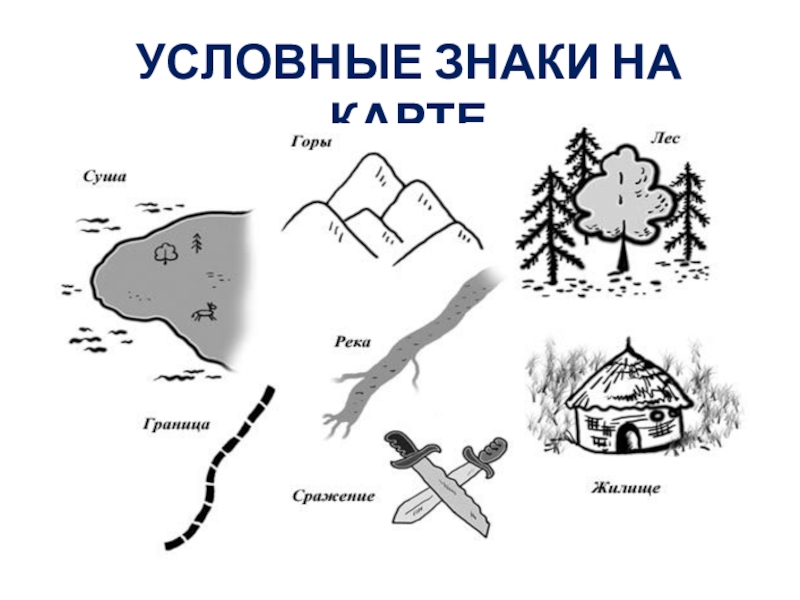Слайд 10УСЛОВНЫЕ ЗНАКИ НА КАРТЕ