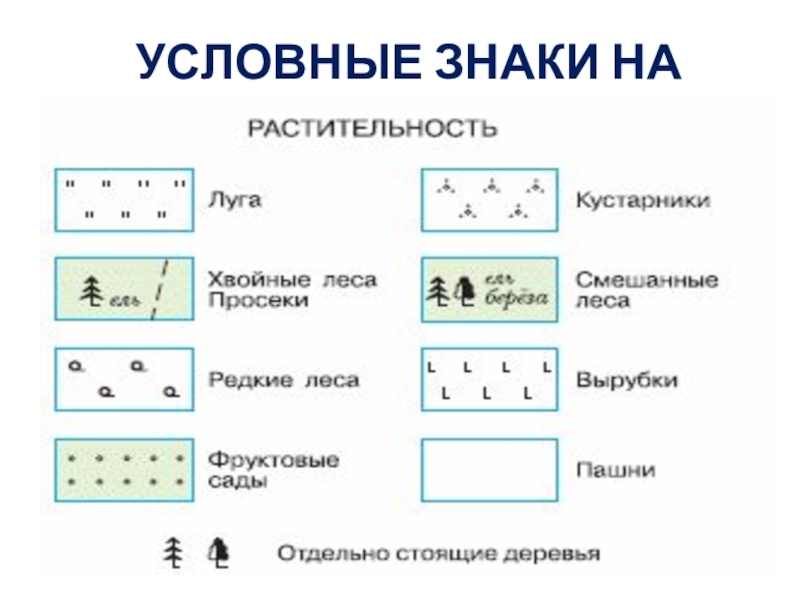 Слайд 11УСЛОВНЫЕ ЗНАКИ НА КАРТЕ