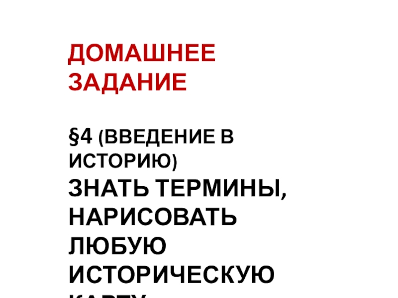 ДОМАШНЕЕ ЗАДАНИЕ§4 (ВВЕДЕНИЕ В ИСТОРИЮ)ЗНАТЬ ТЕРМИНЫ, НАРИСОВАТЬ ЛЮБУЮ ИСТОРИЧЕСКУЮ КАРТУ