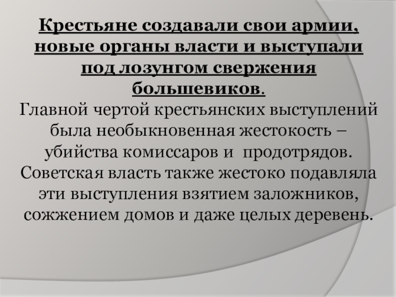 Слайд 12Крестьяне создавали свои армии, новые органы власти и выступали под лозунгом