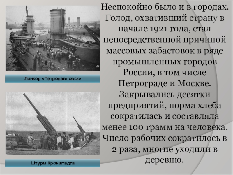 начале 1921 года, стал непосредственной причиной массовых забастовок в ряде промышленных городов России, в том числе Петрограде и Москве.