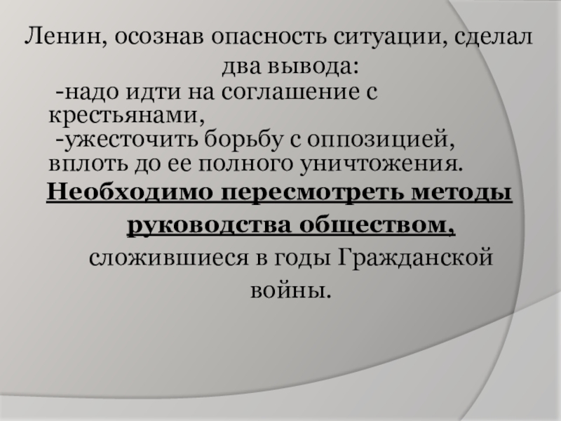 Слайд 16Ленин, осознав опасность ситуации, сделал два вывода: