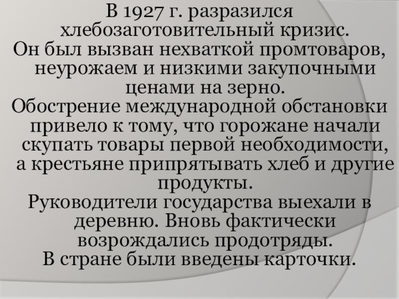 Слайд 26В 1927 г. разразился хлебозаготовительный кризис.