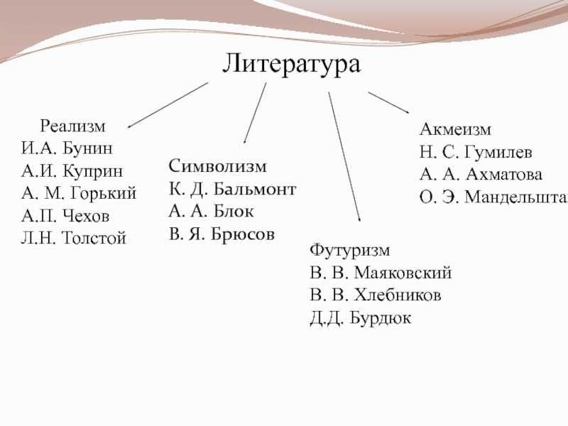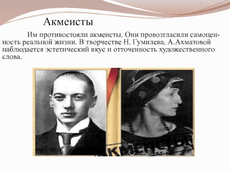 Стремление не только отображать но и изменять мир привело к появлению новых направлений. Символисты начав с упаднических идей , после 1909г. пропагандируют гибель западной цивилизации и возрождение России на основе «русской души».Им противостояли акмеисты.