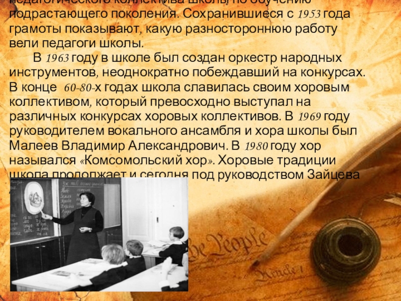 по обучению подрастающего поколения. Сохранившиеся с 1953 года грамоты показывают, какую разностороннюю работу вели педагоги школы.