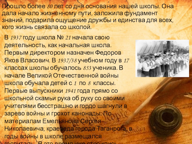 Слайд 22Прошло более 80 лет со дня основания нашей школы. Она дала