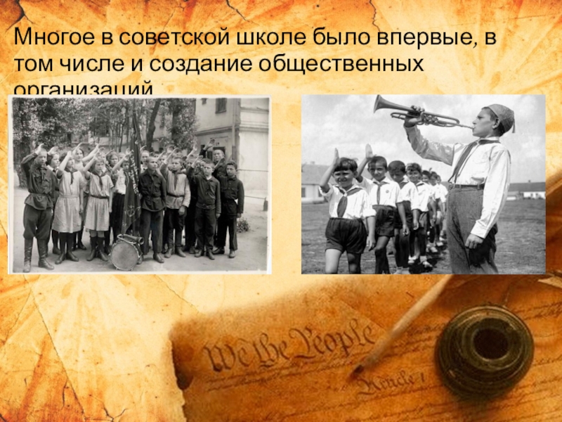 Слайд 14Многое в советской школе было впервые, в том числе и создание