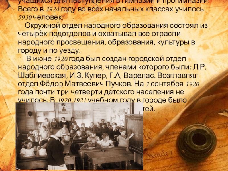 в гимназии и прогимназии. Всего в 1924 году во всех начальных классах училось 5930 человек.