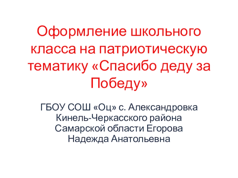 «Оц» с. Александровка Кинель-Черкасского района Самарской области Егорова Надежда Анатольевна