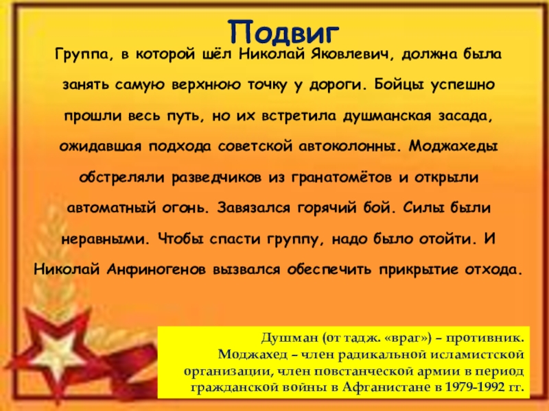 Моджахед – член радикальной исламистской организации, член повстанческой армии в период гражданской войны в Афганистане в 1979-1992 гг.