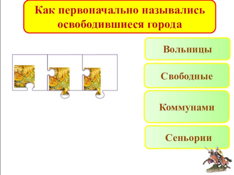 Как первоначально назывались освободившиеся городаВольницы СеньорииСвободныеКоммунами