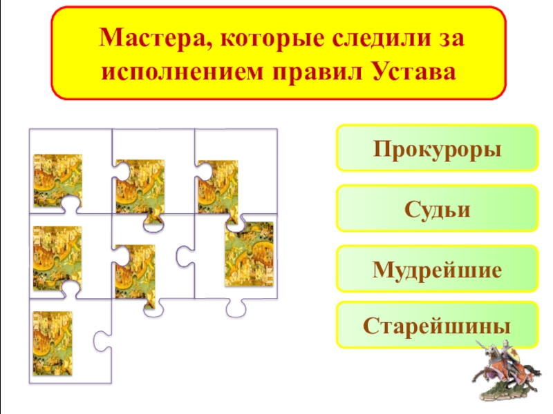 Слайд 8 Мастера, которые следили за исполнением правил Устава