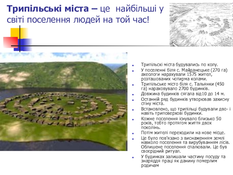 У поселенні біля с. Майданецьке (270 га) ахеологи нарахували 1575 жител, розташованих чотирма колами.