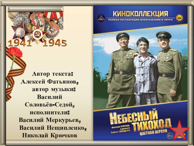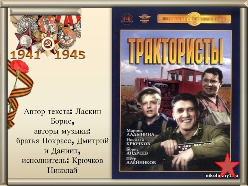 Автор текста: Ласкин Борис, авторы музыки:братья Покрасс, Дмитрий и Даниил,исполнитель: Крючков Николай