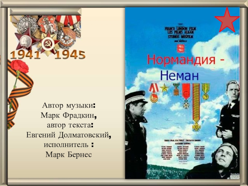 Автор музыки: Марк Фрадкин, автор текста:Евгений Долматовский,исполнитель : Марк Бернес