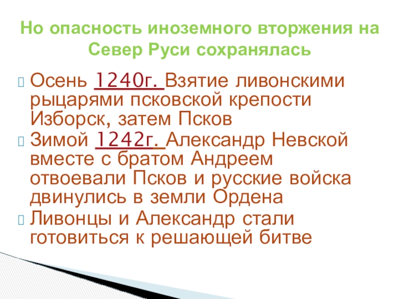 Но опасность иноземного вторжения на Север Руси сохранялась