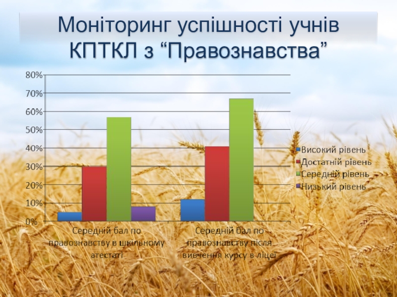Слайд 25Моніторинг успішності учнів КПТКЛ з “Правознавства”