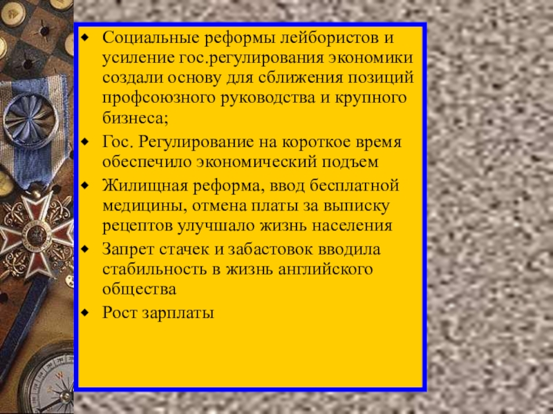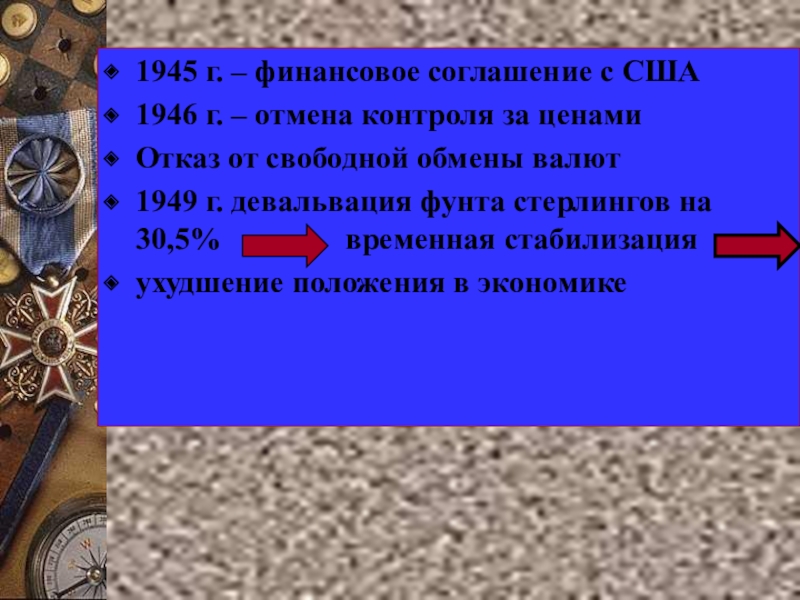 Этот курс осложнил положение Англии в послевоенном мире, ослабление международного положения