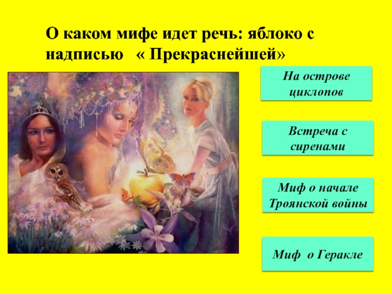 О каком мифе идет речь: яблоко с надписью « Прекраснейшей»