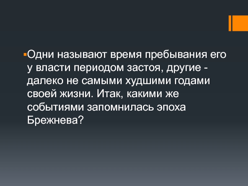 Слайд 2Одни называют время пребывания его у власти периодом застоя, другие -