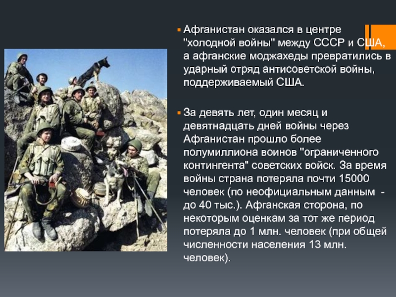 Слайд 9Афганистан оказался в центре "холодной войны" между СССР и США, а