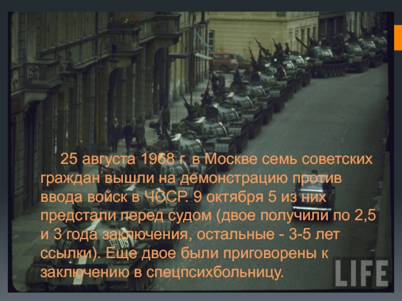 Слайд 4 25 августа 1968 г. в Москве семь советских граждан вышли на