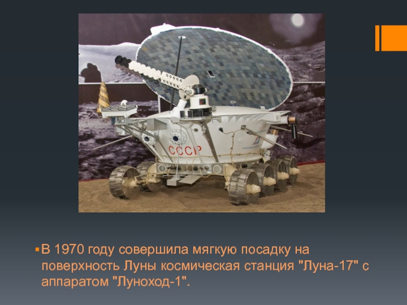 Слайд 21В 1970 году совершила мягкую посадку на поверхность Луны космическая станция