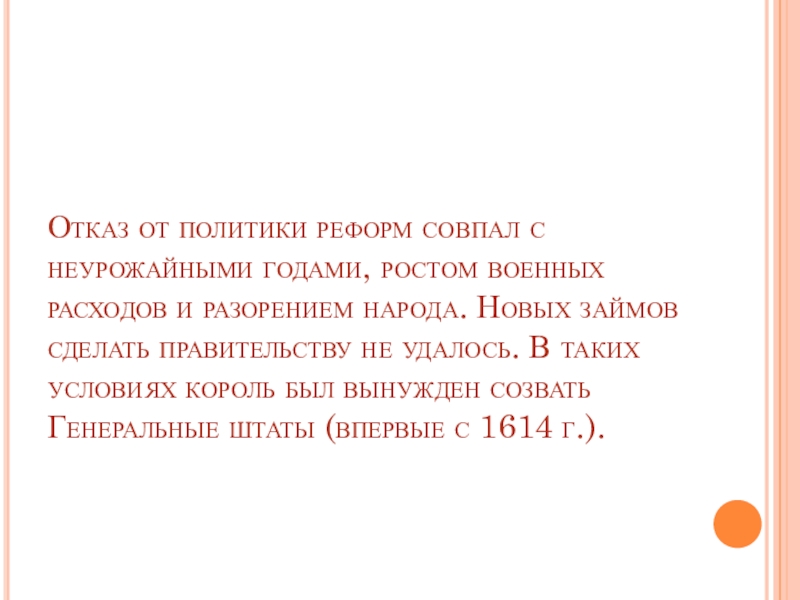и разорением народа. Новых займов сделать правительству не удалось. В таких условиях король был вынужден созвать Генеральные штаты (впервые с 1614 г.).