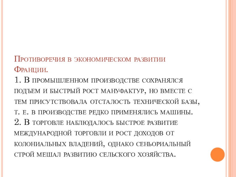 Определить противоречия в развитии Франции, их влияние на экономику страны;