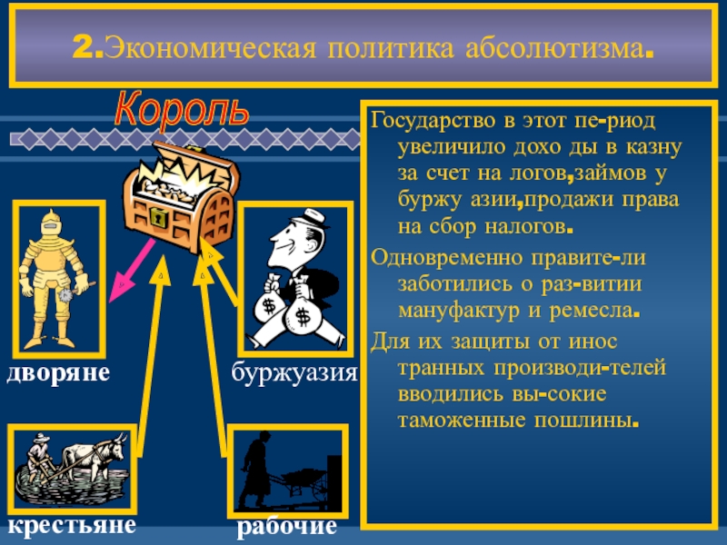 Это требовало посто-янного пополнения казны и король стал продавать буржуазии дворянские титулы.