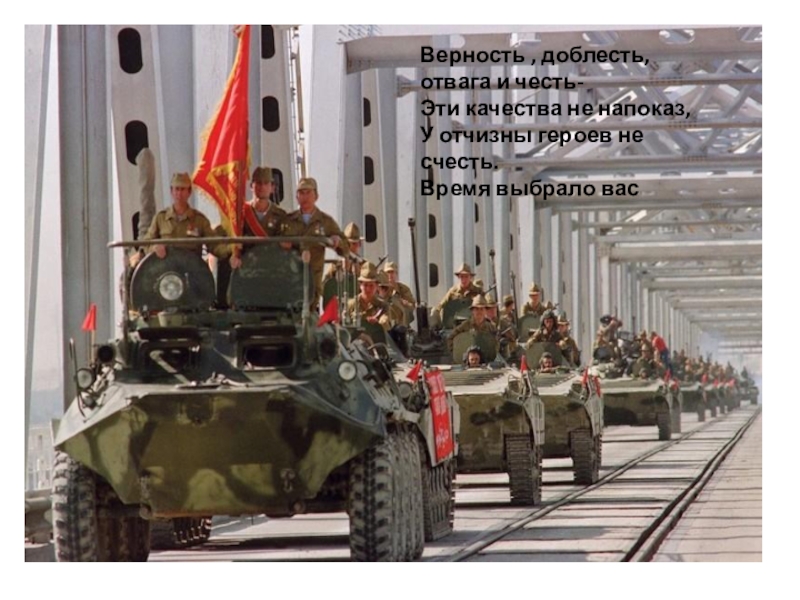 Слайд 22Верность , доблесть, отвага и честь- Эти качества не напоказ, У