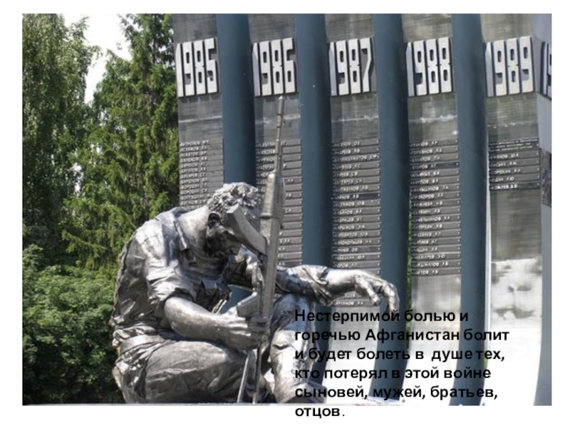 Слайд 3Нестерпимой болью и горечью Афганистан болит и будет болеть в душе