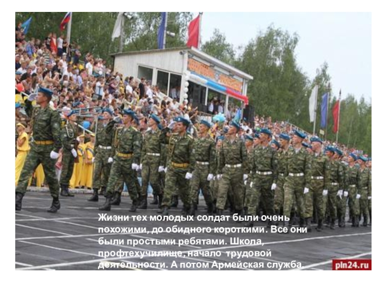 Слайд 9Жизни тех молодых солдат были очень похожими, до обидного короткими. Все