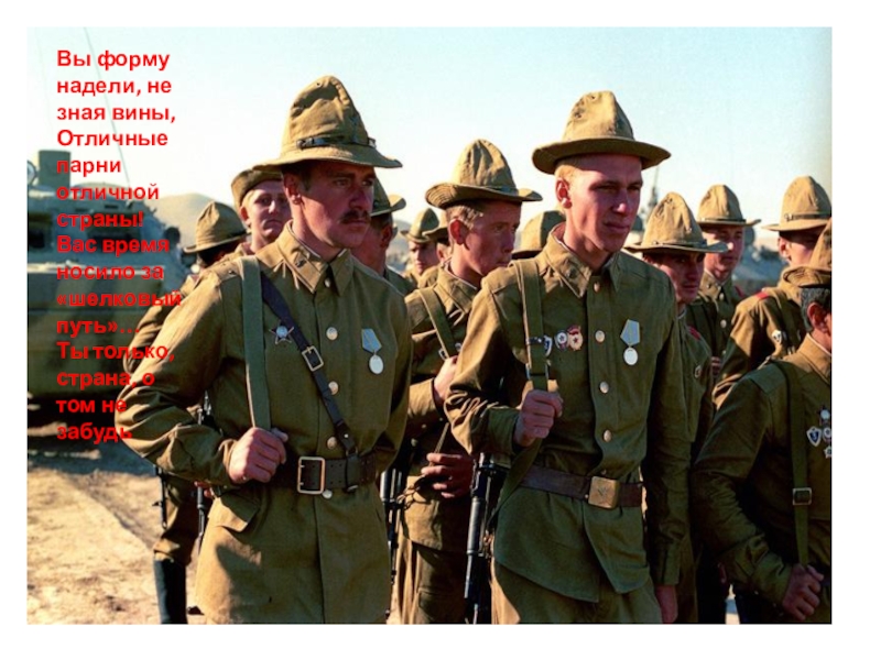 Слайд 12Вы форму надели, не зная вины, Отличные парни отличной страны! Вас