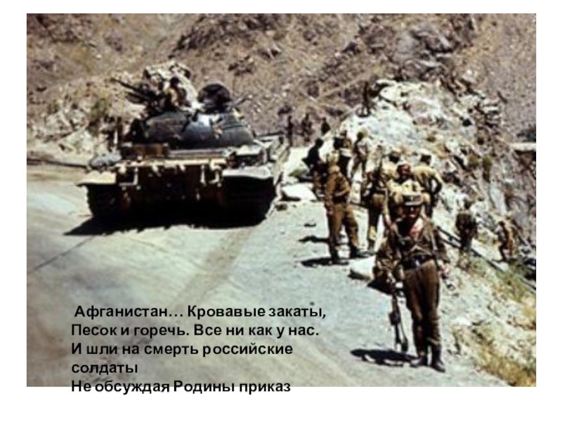 Слайд 6 Афганистан… Кровавые закаты, Песок и горечь. Все ни как у