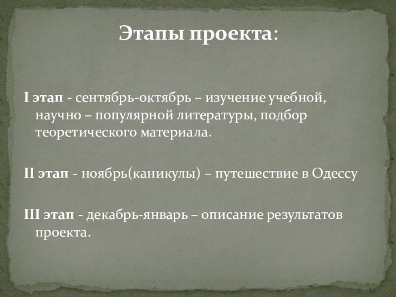 II этап - ноябрь(каникулы) – путешествие в Одессу