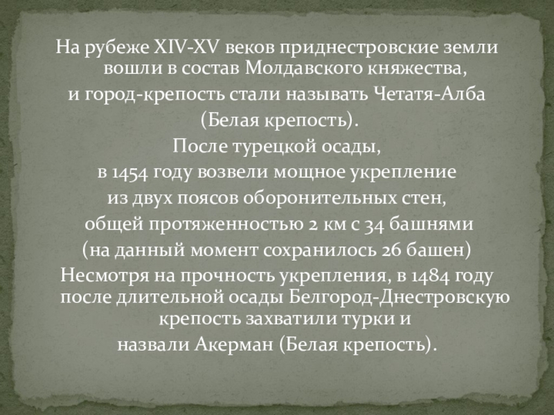 Слайд 48На рубеже XIV-XV веков приднестровские земли вошли в состав Молдавского княжества,