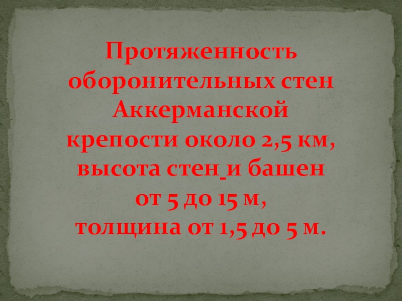 Слайд 29Протяженность оборонительных стен Аккерманской крепости около 2,5 км,