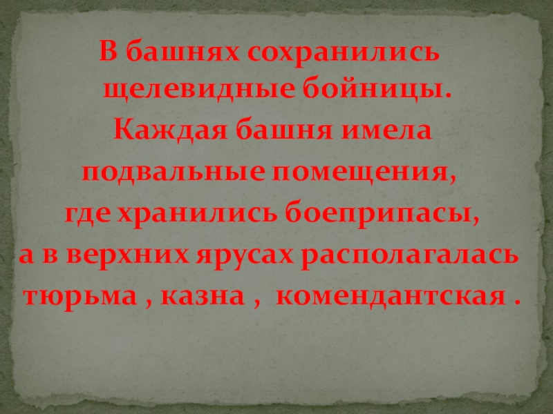 Слайд 39В башнях сохранились щелевидные бойницы.