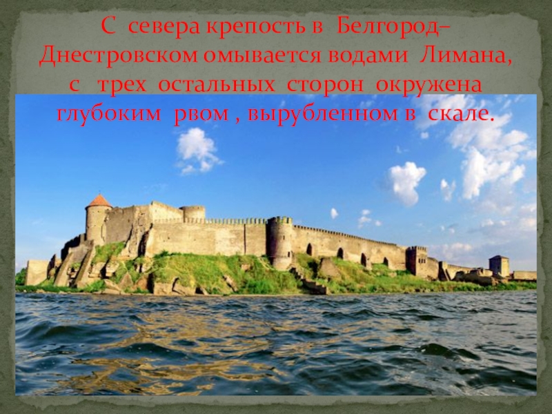 Слайд 27С севера крепость в Белгород–Днестровском омывается водами Лимана,