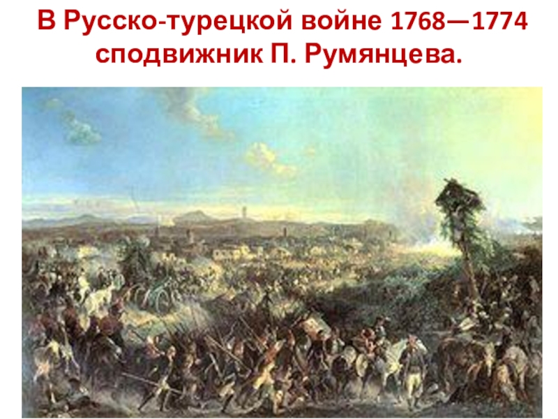 Слайд 5В Русско-турецкой войне 1768—1774 сподвижник П. Румянцева.