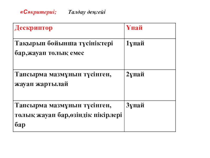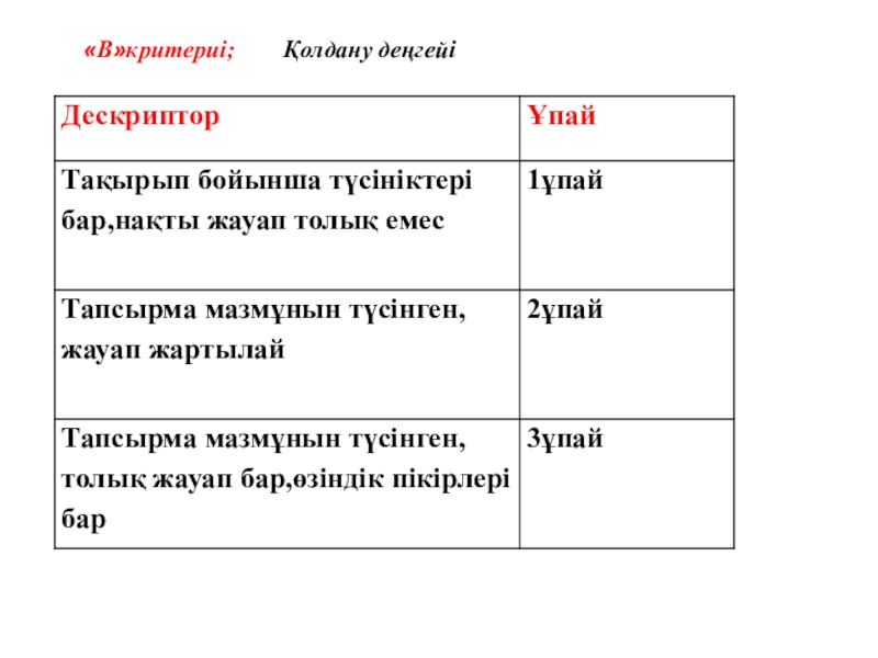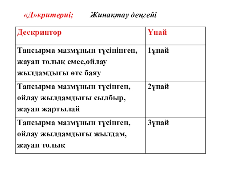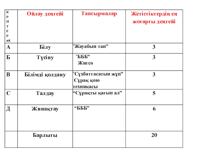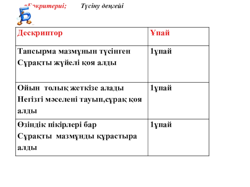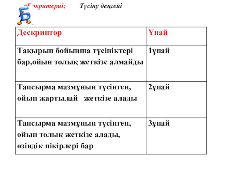 Оқушылардың білімдерін қалыптастырушы бағалауға критерий қою,бағалау шкаласы бойынша бағалау