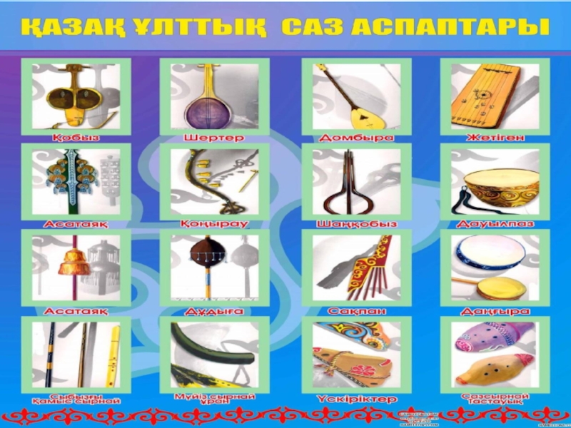 Күтілетін нәтиже: Ұлттық өнермен сусындап домбыра, қобыз аспаптарын және күй өнерінің майталмандары туралы біліп шығады.