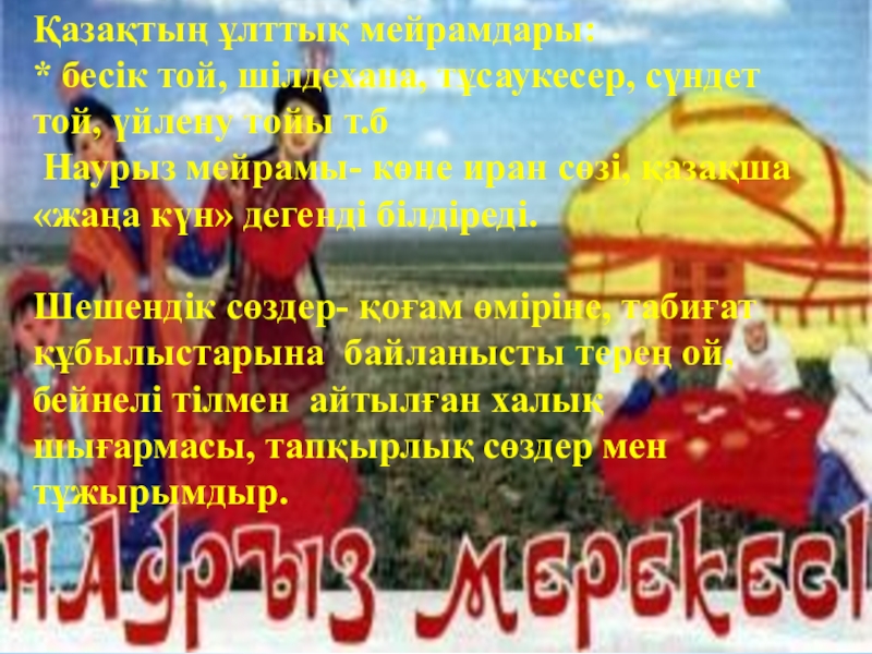 Слайд 5Қазақтың ұлттық мейрамдары: