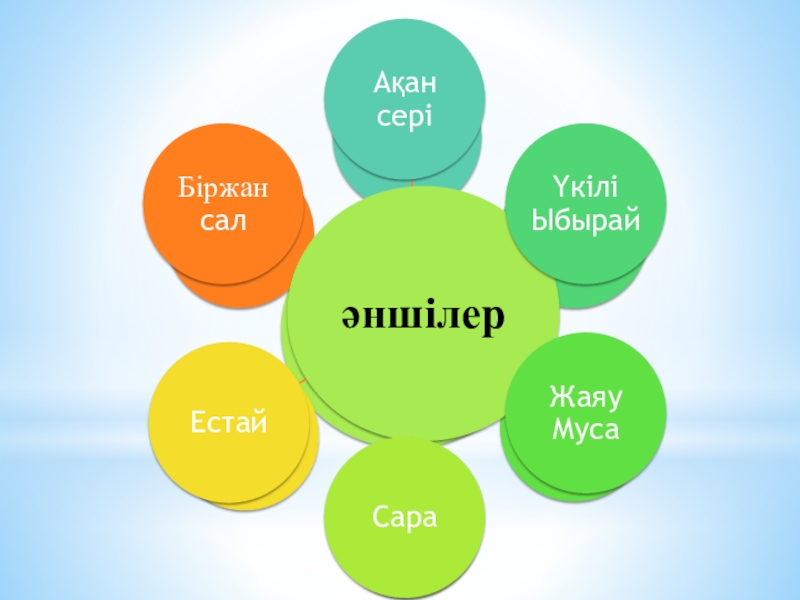 Тәтімбет, Дәулеткерей, Қазақғап, Сүгір, Ықылас, Дина т.б