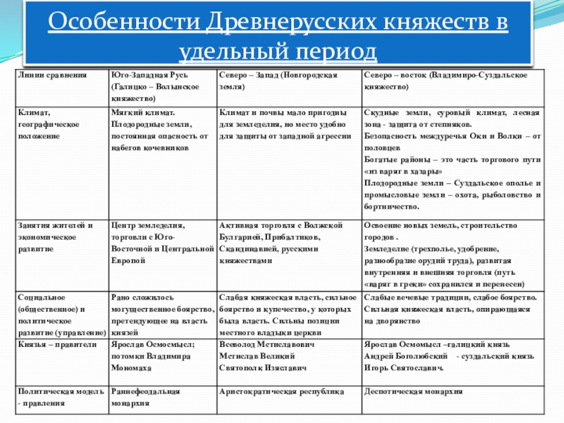 Особенности Древнерусских княжеств в удельный период