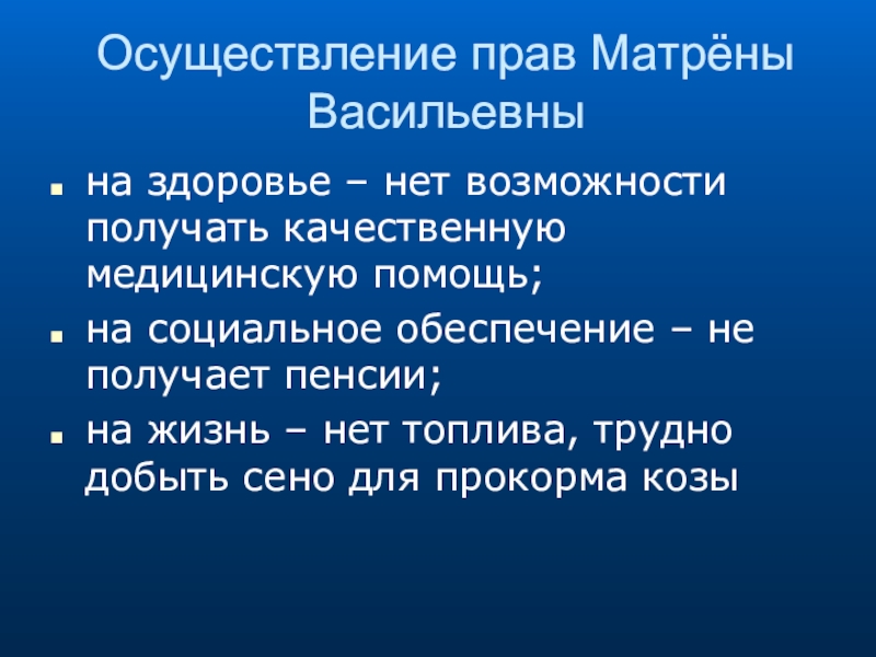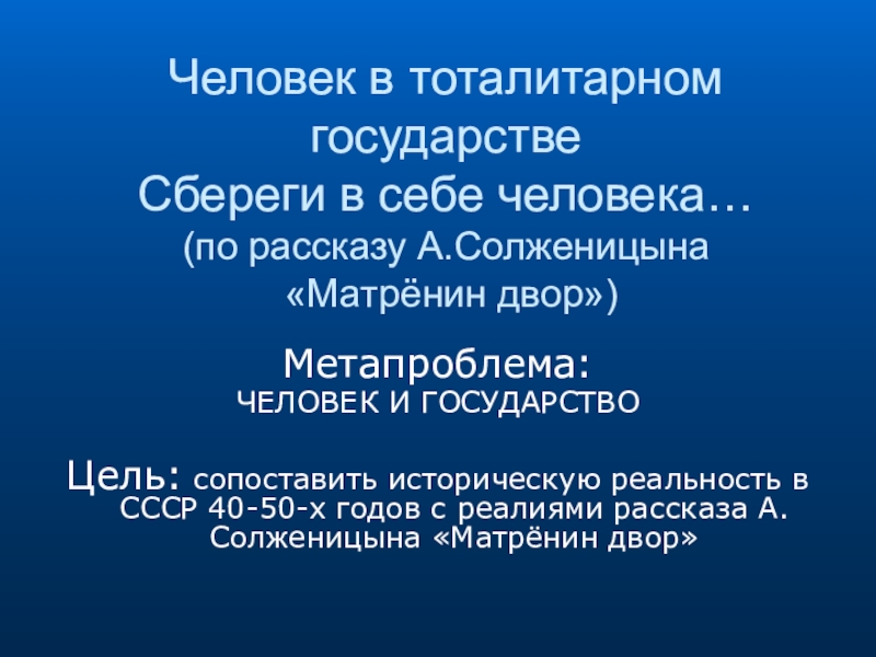 Цель: сопоставить историческую реальность в СССР 40-50-х годов с реалиями рассказа А.Солженицына «Матрёнин двор»