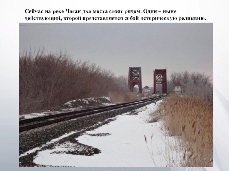 Слайд 7Сейчас на реке Чаган два моста стоят рядом. Один – ныне