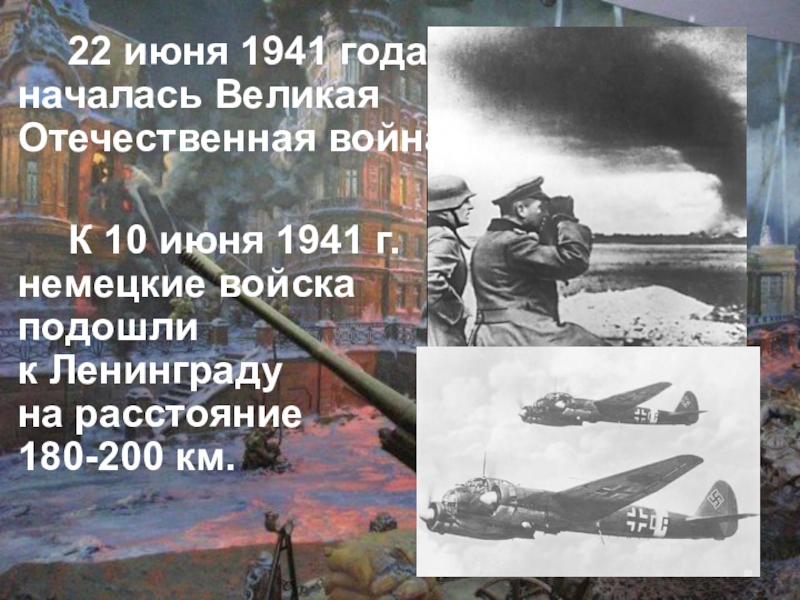 22 июня 1941 года началась Великая Отечественная война. К 10 июня 1941 г. немецкие войска подошли к Ленинграду